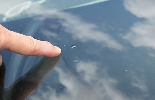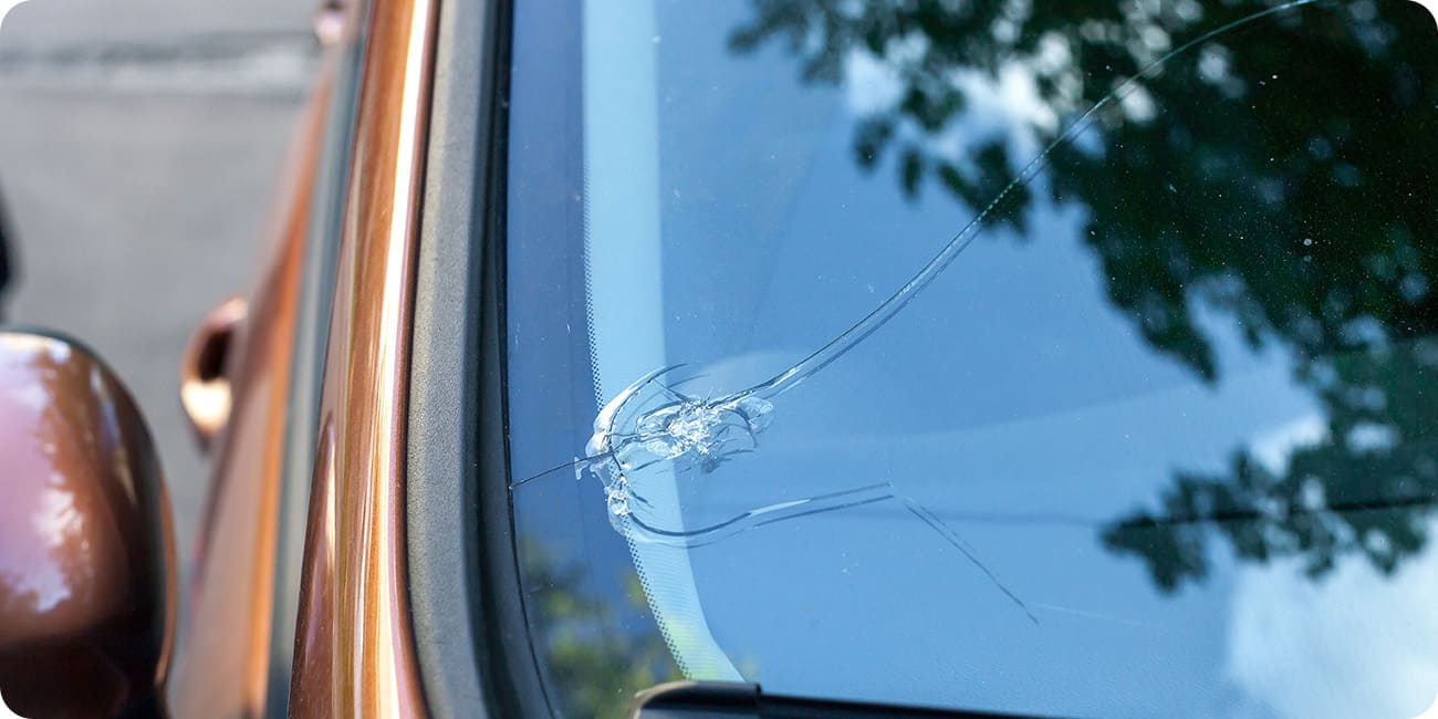 前方車が撒き上げた小石などがフロントガラスに当たって傷ついたり、場合によりひびが入ったりすることがあります。
