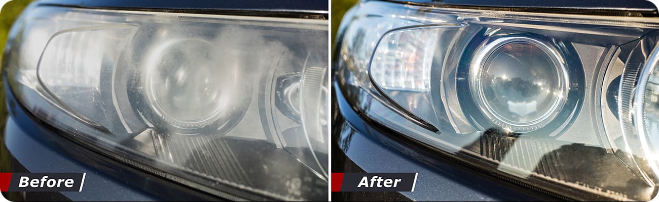 このフィルムのUV機能で、ヘッドライトの退色を防ぎます。